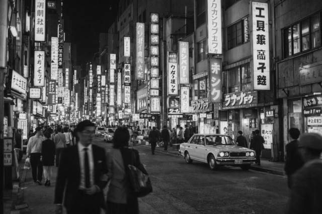 赤や青に光るネオン、手描きの大胆な文字、屋上にそびえる広告塔。 昭和の街は、今よりもはるかに“看板だ